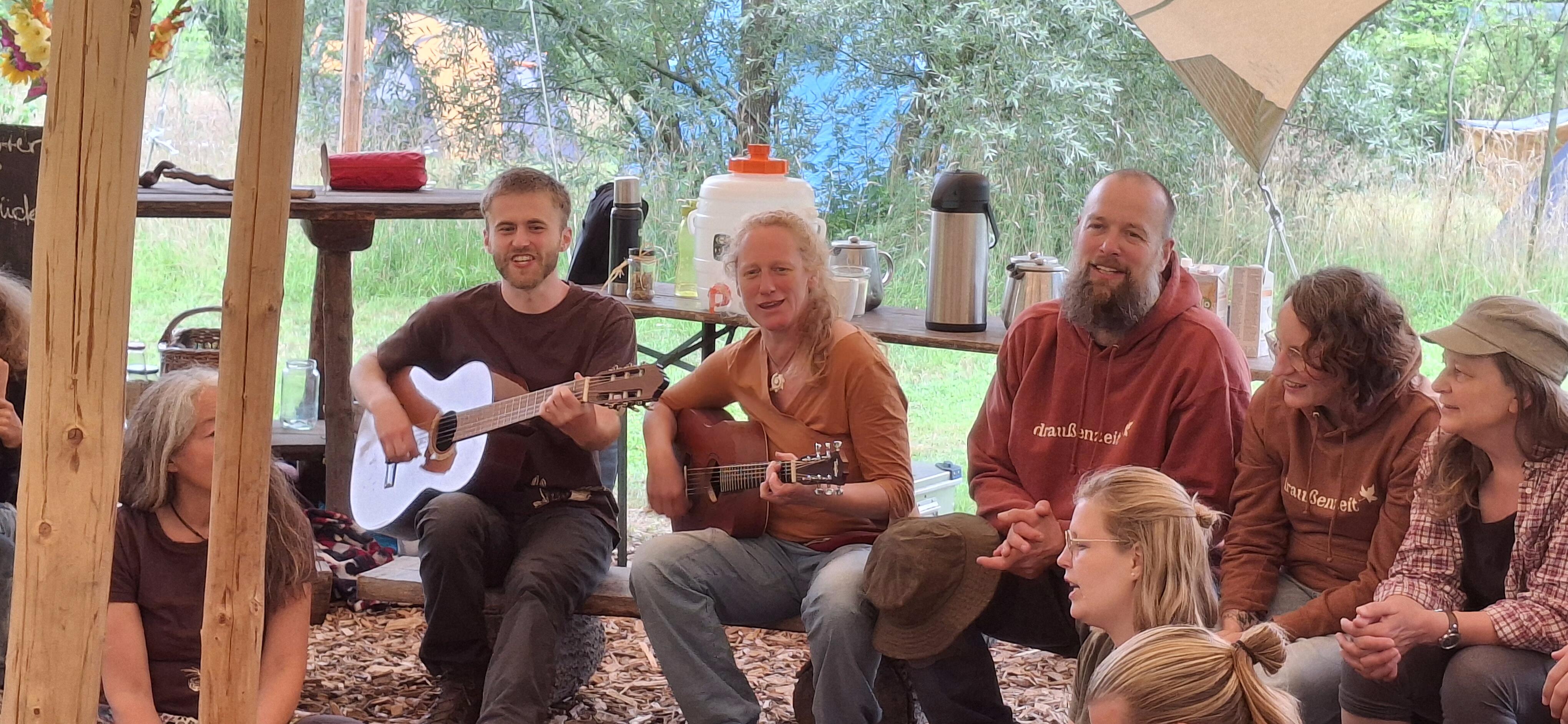 Dieses Wochenende ist für uns alle – für Euch, die Teilnehmer:innen unserer Kurse, für unser Team, zum Wiedersehen eurer Weiterbildungs-„buddies“: gemeinsames draußen sein, Qualitätszeit, Fäden anknüpfen und weiter weben, viel Spielen, im Council sitzen, und Musizieren am Feuer!